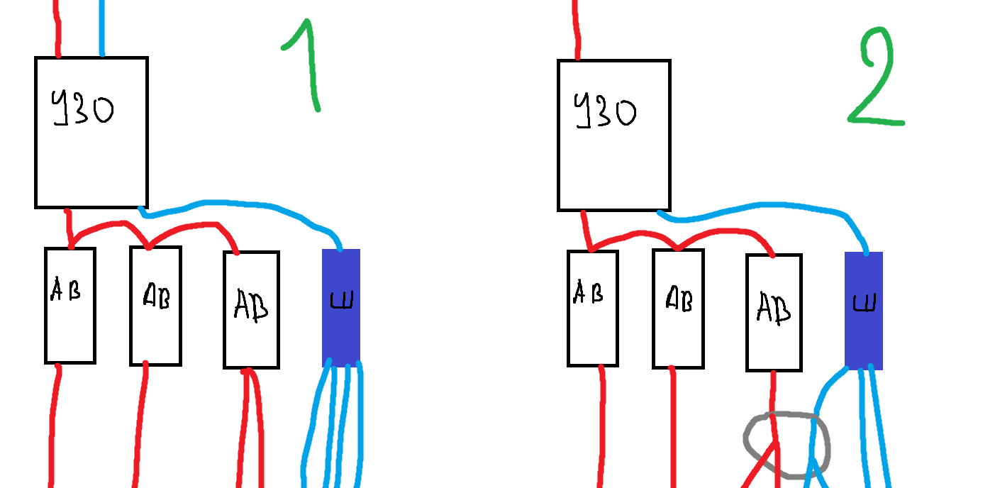 — Чем отличается УЗО от дифавтомата? — Дифавтомат – это автомат + УЗО в одном корпусе. Экономит место в маленьком щитке за счет большей стоимости.