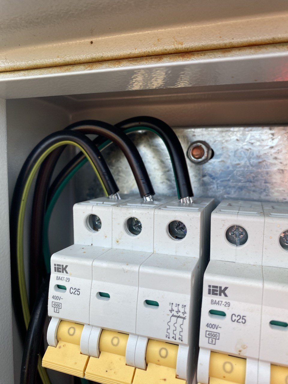 >>361089 > автоматы 25 ампер для розеток 16 ампер Автоматы покупают не для розеток, а для проводов. (Но чтобы 25А автоматы срабатывали раньше, чем загорится проводка, тебе нужно прокладывать проводку не менее 4 мм2.) > Подразумевалось, что по белым проводам пойдет ноль Радиотехник детектед. Здесь синий - это ноль. (Синий - это не "цветной", синий - это "холодный". Красный и белый - одно и то же.) > не смог определить, где он Измерь напряжение между проводом и землёй. > боюсь, что провод с фазой выскочил из вводного автомата и лег на корпус Заземли ящик. Привяжи провода к рейкам. > вводной С40 Сработает на токе 58 А, это безопасно только для проводов 6-8 мм2