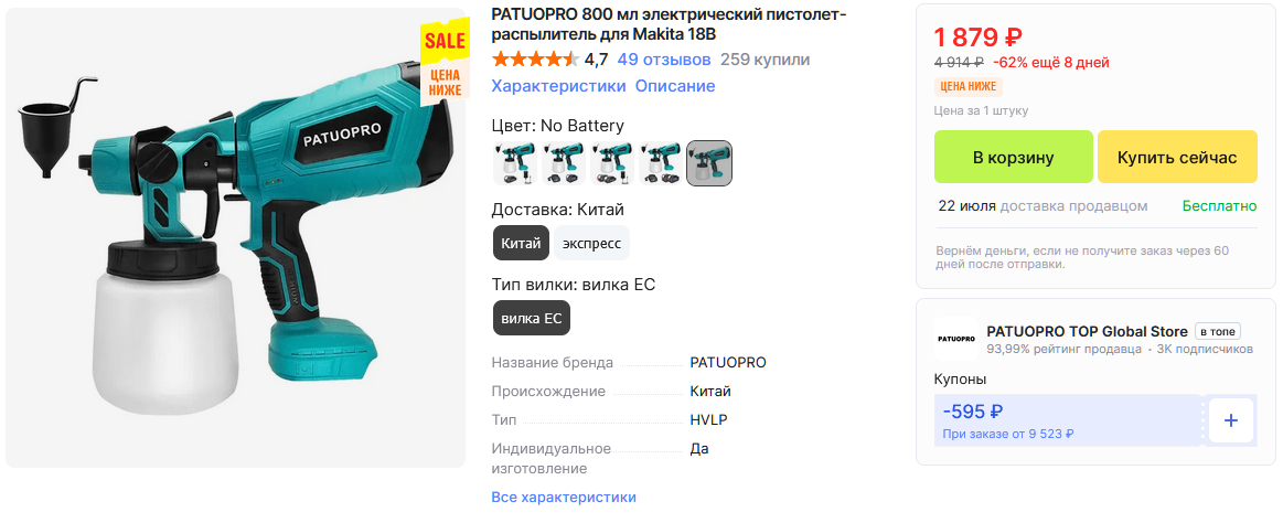 Пришло время заказать себе краскопульт для прокраса деревянного фасада дома. Есть два стула: 1. Навернуть китаекала и казать аккумуляторный краскопульт. 2. Навернуть китаекала и заказать какой-нибудь супер-мини-компрессор с ресивером и пневмопульт. Второй вариант дороже и нахуй не нужон - ресивер будет маленький, компрессор будет постоянно работать, и встанет это все дороже в 1,5-2 раза по сравнению с аккумуляторным. Поэтому я собираюсь остановиться на первом варианте, навернуть китаекала и купить сорт оф пикрил.