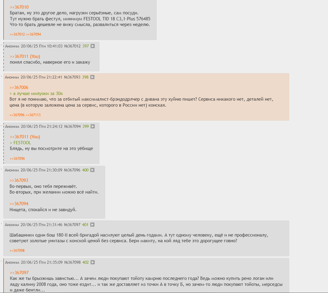 Ну мы советовали всегда таким брать патупро за тыщу рублей, для его задач лучший выбор. Но этот же скуфак будет агриться в ответ, хуле так дёшево, потом макитошиз прибежит, начнёт воевать против патупро. И что и куда? Сеешь свет, сеешь истину, тебе же голову рубить будут за неё.