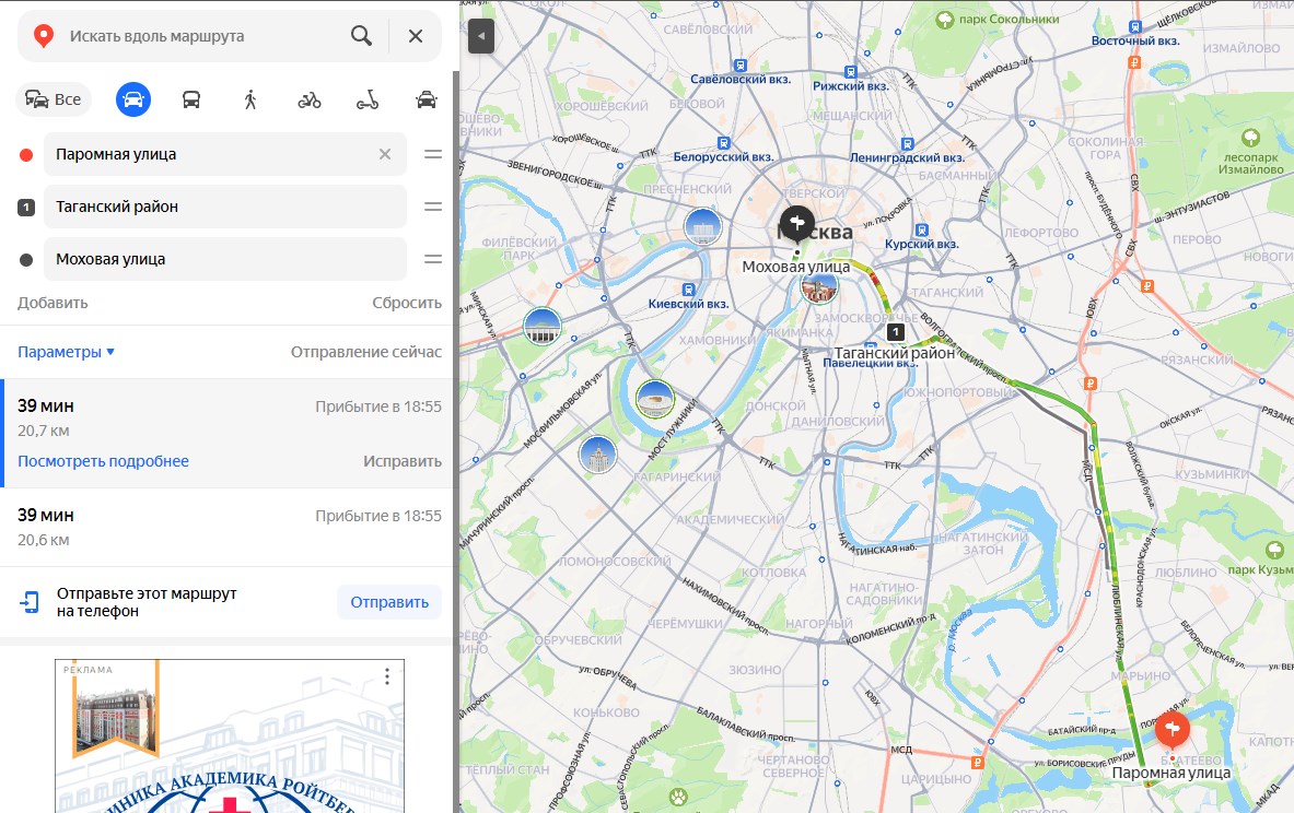 >>367315 У яндекса есть прогнозирование времени и можно выбрать дату и час, но разницы все равно особой нет. Что 10км за 20 минут, что 20км за 50 минут - это средняя скорость 50кмч, все равно что бегом бежать, никакого удовольствия от вождения не получишь.