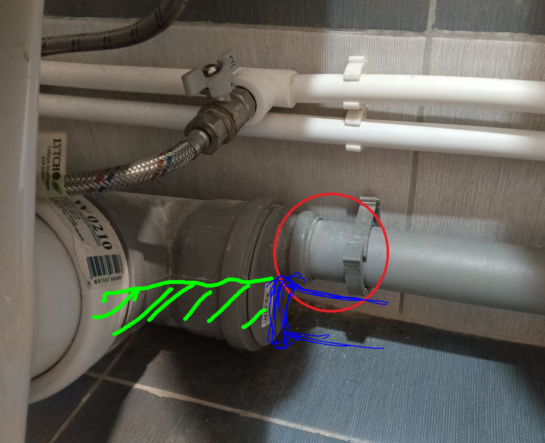 > Во-вторых, дренаж надо было прикручивать на горизонтальное колено с верхней стороны, чтобы туда не затекали стоки. Каким нахуй образом туда затекут стоки? Выше гидрозатвора стоит. Тем более под другим ракурсом видно что дренаж ниже выход из фильтра.