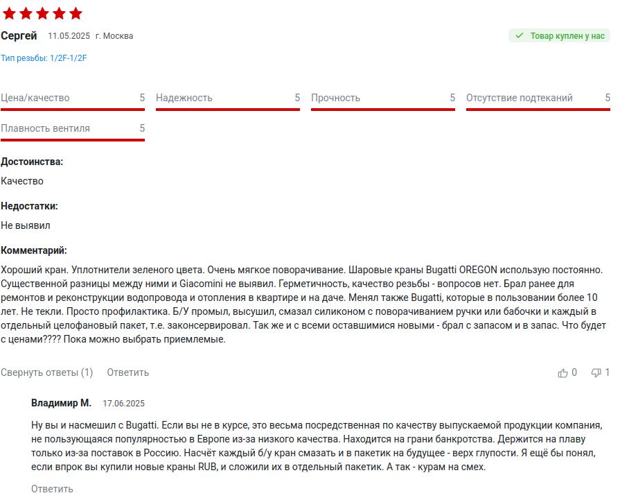 >>368910 >Это буквально местные полуподвальные бренды, которые маскируются под итальянские Нет, бугатти это итальянский бренд, одни из лучших кранов кстати. Если ты не можешь отличить подделку, то это проблема твоя, а не бренда
