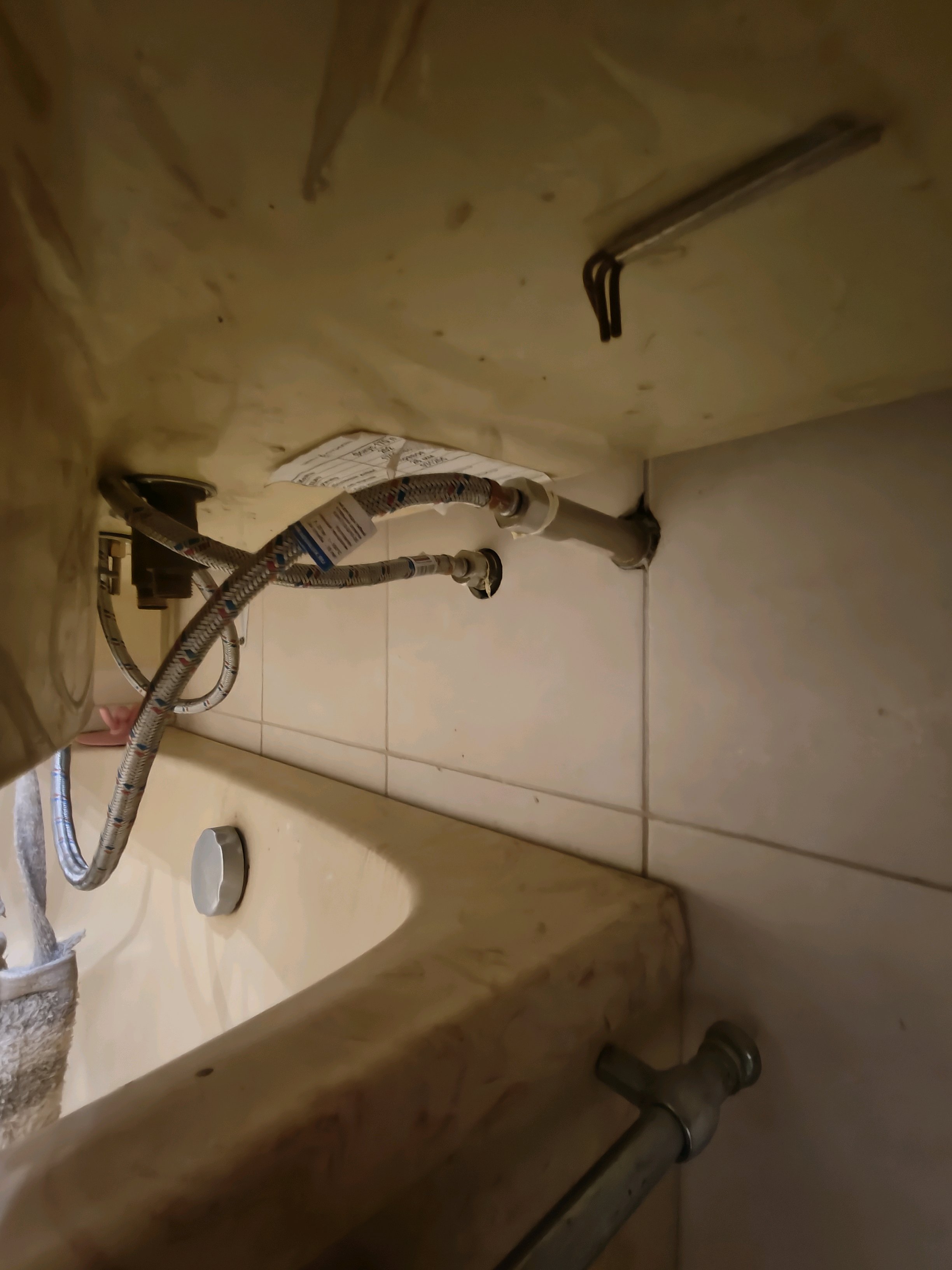 >>375253 Забыл написать, что коллектора нет — отделка от застроя, разводка водоснабжения последовательная, "гирляндой". Пикрелейтед — я делал подключение стиралки, нового донного клапана и смесителя. До этого смеситель чисто в водорозетки в стене подключался. Краны повёрнуты на бок, потому что иначе упираются в выдвижной ящик подвесной тумбы под умывальником.