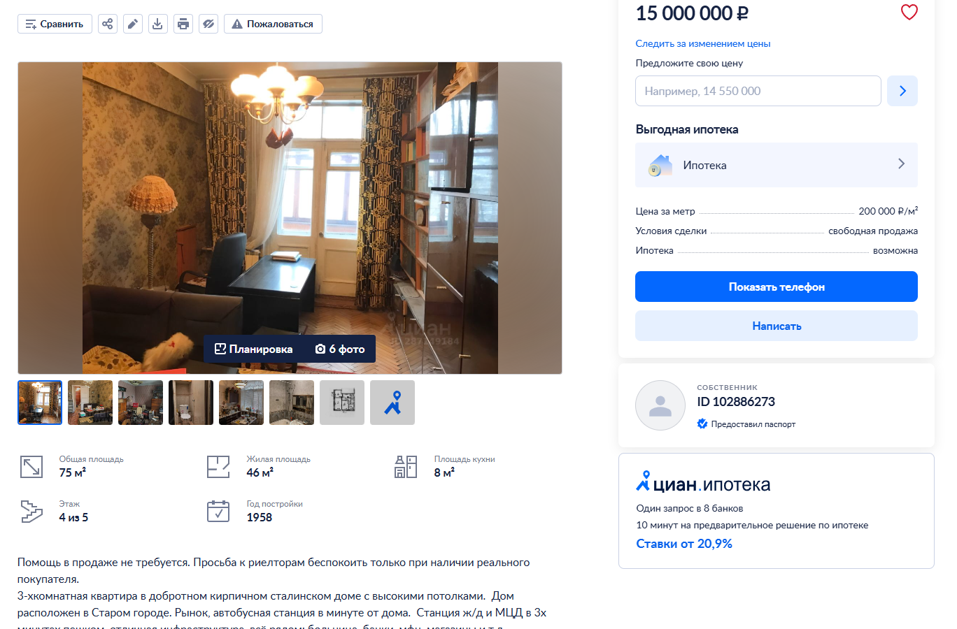 >>368823 >Почему дохлый номер? Ну, наверное потому, что за 15кк внутри ТТК ты найдешь только доли, залоговую недвижимость или очень мутные квартиры с убитым ремонтом в каких-нибудь панельных домах. За 22-25кк да, еще можно посмотреть. А так за 15кк тебе светит "однушка" в 32 квадрата в пиковейнике где-нибудь в Гольяново