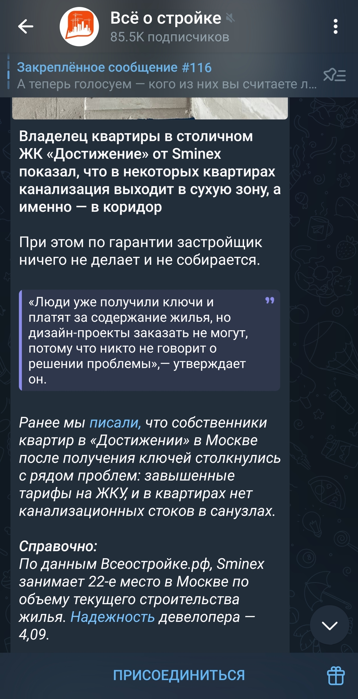 >>370247 Что Копролёт, что говноПИК - одни и те же яйца с разных ракурсов. Отвратительное качество всего, чего можно, ломающиеся лифты, нечеловеческая плотность квартир, использование труда нелегалов, использование будущих квартир в качестве общаг для нелегалов, хамское похуистичное отношение к дольщикам, бесконечный перенос сроков. Если ты из всего перечисленного столкнулся только с последним - считай, повезло.