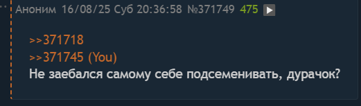 >>370358 Это такая форума коупинга, чтобы не сойти с ума в крошечной копрокоробочке в окружении ещё пятисот квартир на один подъезд? Чисто залиться после долбильни бухлом и строчить гигапасты, фантазируя о том, как страдает ненавистный тебе протык - не на публику, а для себя, для души? Ну, чем бы дитя ни тешилось. Тебя было бы даже жалко, но ты сам виноват. Столько душевных сил и времени, которые можно было потратить на улучшение зилищеых условий, ты тратишь на то, чтобы рыгать желчью на дваче.