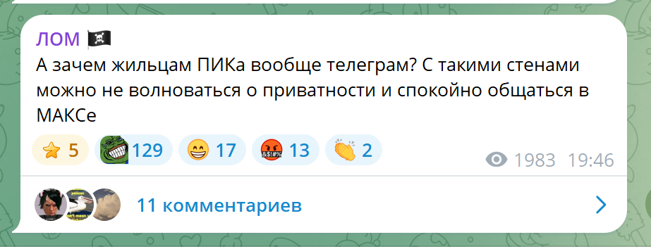 ⚡️Застройщик ПИК заблокировал Telegram в своих новостройках — об этом массово сообщают жители в городских чатах