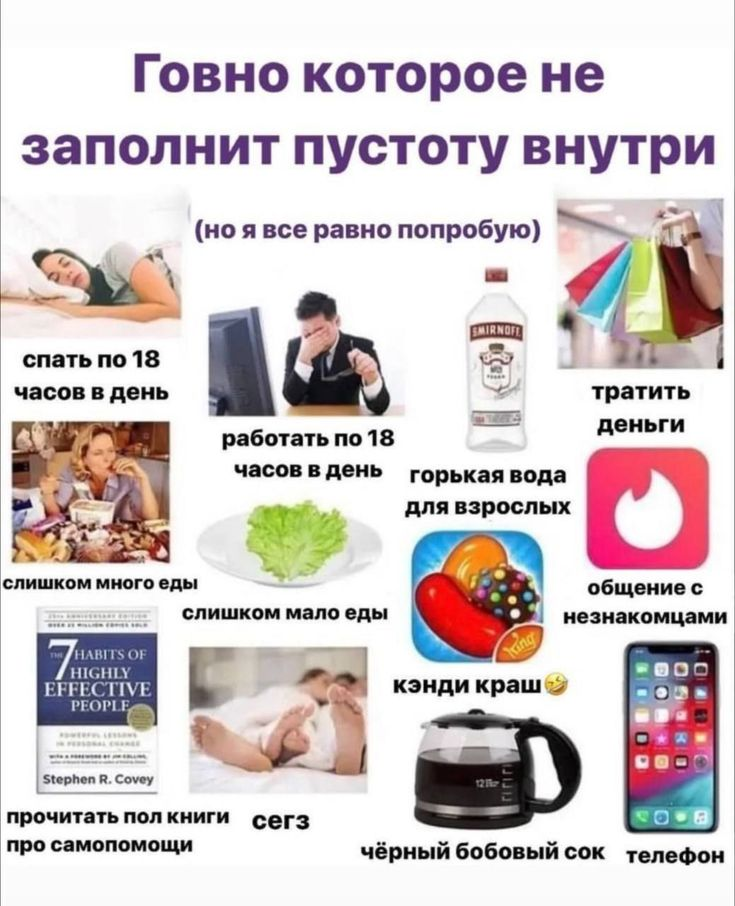 1. Впервые в жизни зарегистрировался сегодня на хх, заполнив основную информацию, и отклинулся на пять около-мусорных вакансий в месте моей дислокации - аж на три получил приглашения на собесы. В душе не ебу, как буду по ним ходить или созваниваться, но оно определённо надо, чтобы унять тряску и получить опыт обсёров и отказов. 2. Я в ОП-посте писал, что задумываться об отношениях, семье и детях не вижу смысла. Так вот. Я нищий уёбок с проёбанным образованием даже на уровне школы, который ничего не умеет и не способен толком отвечать за себя. И чем больше проходит времени, тем хуже становится моё положение. Полагаю, что нужно расставить приоритеты на оставшийся жизненный срок: лечение башки; получение опыта самостоятельной жизни (работа, быт, бюджет); приобретение монетизируемых и, желательно, востребованных навыков; поддержка физического здоровья; повышение уровня самообразования (я школьную физику не знаю совершенно, намедни пытался пройти тест по механике и завалил его) и квалификации (если повезет найти скилловую работу); поддержка отношений с друзьями и семьей; накопление копеек и полезных вещей на экстренные жизненные ситуации. 3. Я всё хочу обратиться к психологу или психотерапевту и проработать говняк в башке, но мне дико стрёмно и стыдно описывать свою ситуацию кому-то, кто в жизни вполне состоялся как специалист. Но надо. Даже если сабж окажется гадателем на таро, это как минимум будет опыт. Сам я не вижу выхода из цикла "нищета-хреновая работа-проблемы по жизни во все стороны" и мне это ебёт мозг. Нужно как-то научиться не париться по этому поводу и существовать, находя хоть что-то приятное в окружающей действительности.