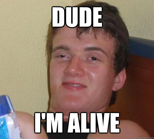 Всем привет. Извиняюсь за то что так надолго пропал. Я жив и батя меня пока не пристрелил в лесу. Сорян если огорчил анонов выше этой новостью.