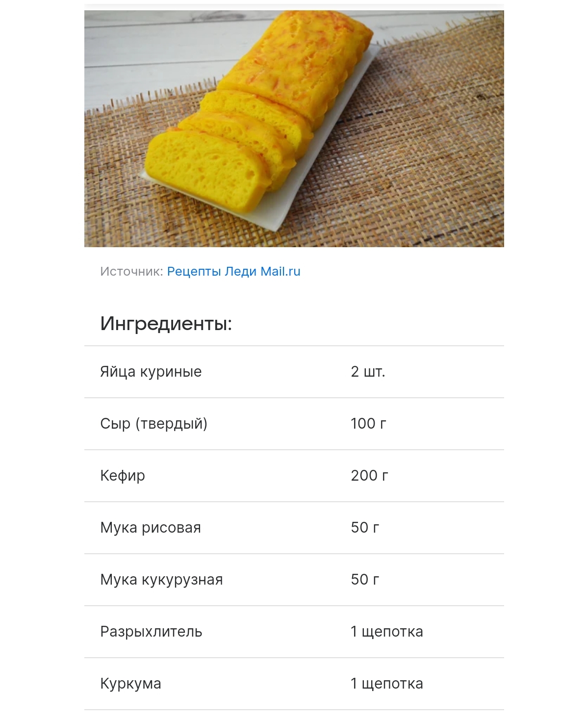 200мл кефира 2 яйца 2 стл сахара всё перемешать 1стл растительного масла 150г муки всё перемешать, оставить на расстойку на 20 минут перед выпеканием добавить 1/2чл разрыхлителя, перемешать смазывать сковороду/противень маслом