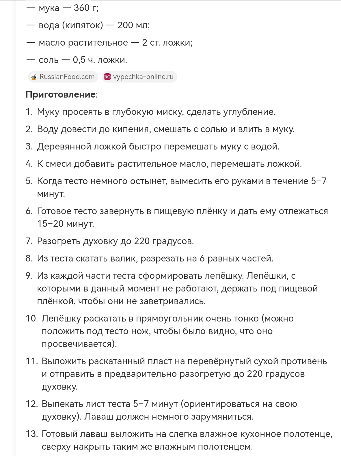 Лаваш идеальный: Вода 0,7 от муки (70% гидрация) Соль 1/20 от воды Дрожжи прессованные 1/2 от соли