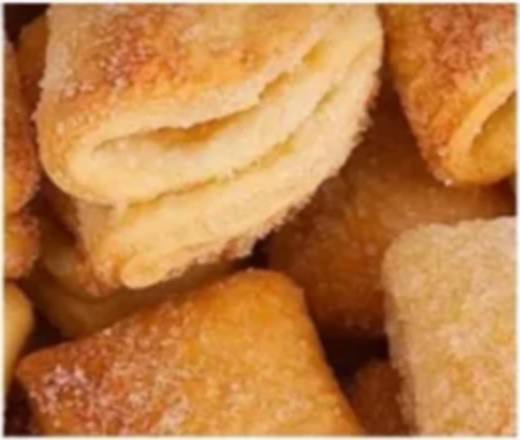 Сухие перемешать, мокрые венчиком перемешать, соединить, вымесить тесто, убрать в пакет и в холодильник на 1 час Раскатать, нарезать по 3мм Жарить во фритюре по 1-2 минуты