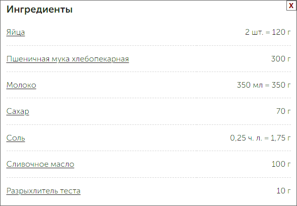 Итого: 236г муки 164г воды 8г соли 4г дрожжей