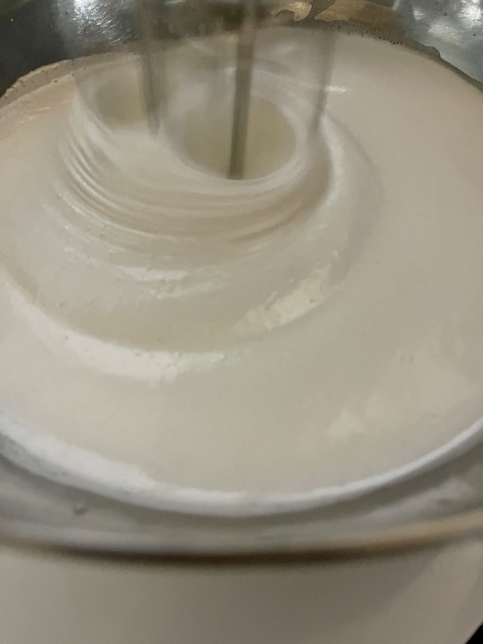 3. Добавляем сухую смесь в жидкую, быстро перемешиваем до получения однородного и довольно жидкого теста.