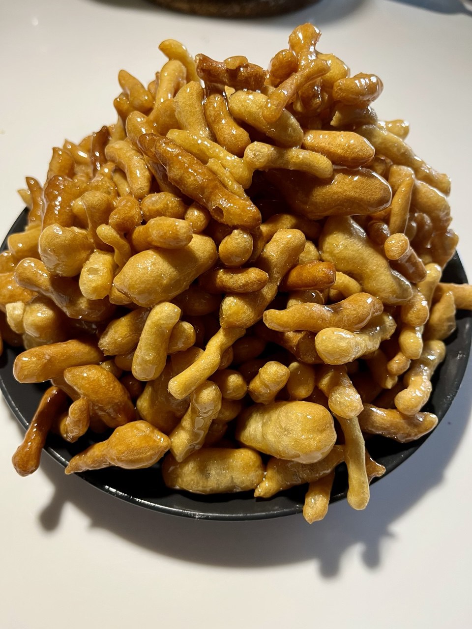 Мёд сахар помешивая на слабом огне довести до пены, выключить, полить чак-чак. Убрать в холодильник