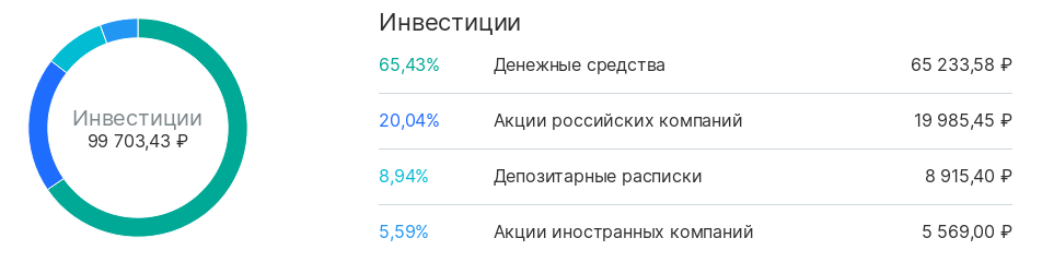 >>500025 Да я уже понял, что брокерский счёт открывать надо. Вот, открыл. Ещё 24к закинул на Сбер, а оттуда сотку перевёл на брокерский счёт. Сейчас разбираюсь, как там акции покупать.