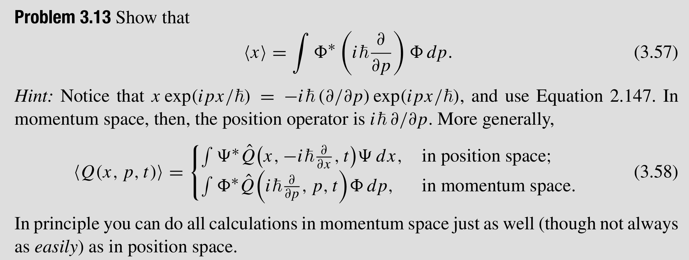 >>816821 Прошел половину этой книжки + его же видео лекции. Она гораздо проще Гриффица, упражнения элементарные по сравнению с ним. И гораздо легче вникать в то что он объясняет, потому что он начал с абстрактной дискретной системы (со спина). И там конкретная реализация теории очень простая, раз-раз все на 2х2 матрицах посчитали. Гриффиц же заходит с теории движения частицы, и у него прям с порога на тебе дифуры в частных производных. И все, там интеграл на интеграле, на любой чих надо интеграл считать. И за этим суть забываешь, пока все это посчитаешь, сама цель и причина этих расчетов теряется в дебрях. Трудно следить за мыслью. У Сасскинда этот спин менее интуитивно понятный - что такое этот ваш спин, откуда он взялся, но по крайней мере связанные с ним расчеты простые. И потом остается сделать прыжок, сказав что частица ведет себя так же как и спин, только бесконечномерный. Скалярное произведение векторов будет интегралом произведения волновых функций. Позиция и момент это просто два разных оператора со своими базисами. И т.д.