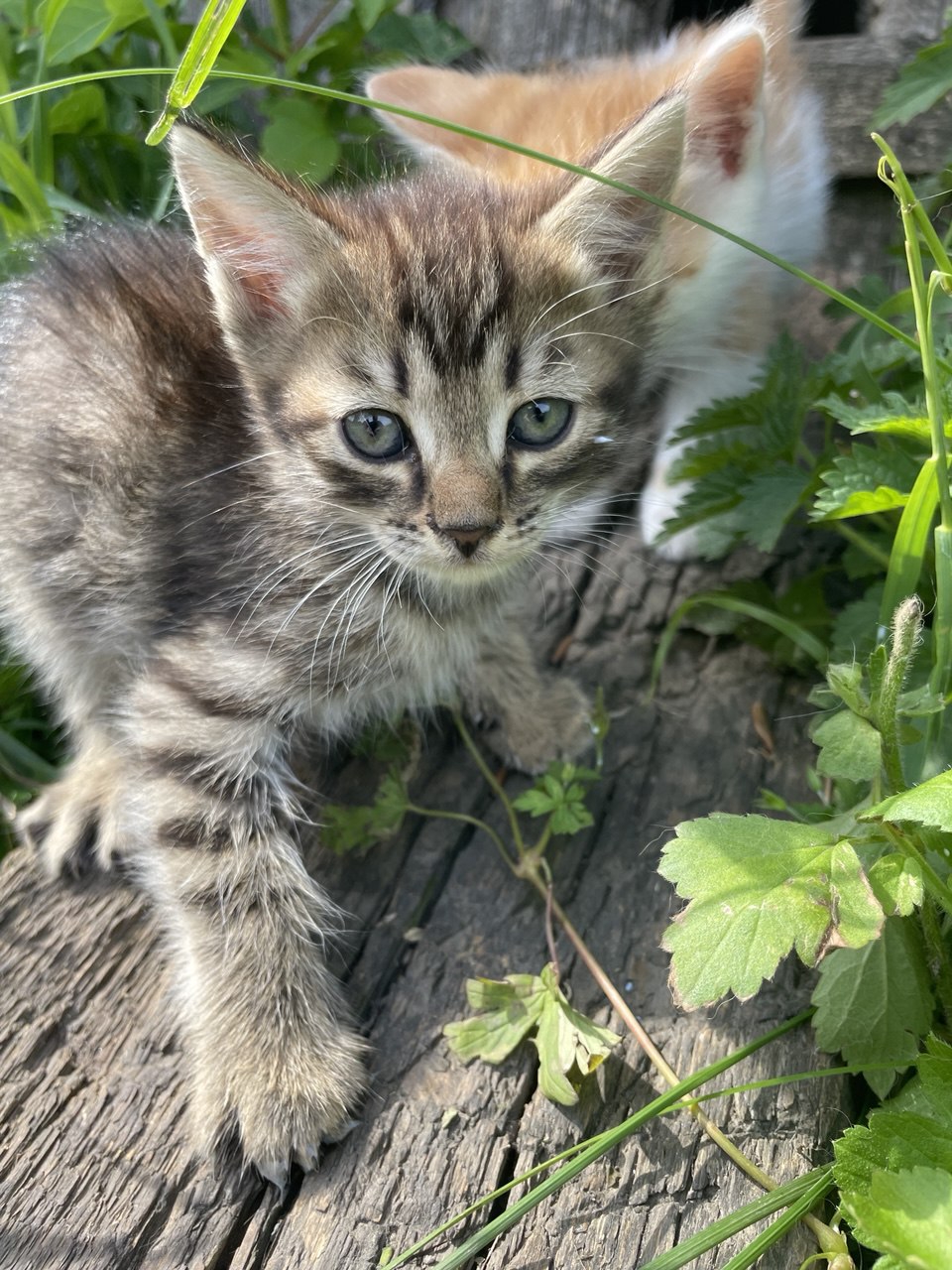 Прошлым летом к нам на огород пришла вот эта кошка, и осталась у нас жить, зимовала и ночует в соседней сарайке. Кто-то выкинул, видимо. Назвали Сусликом или же просто Сусля. Вовремя не стерилизовали, не понятно было, стерилизованная она или нет, тем летом не забеременела, хотя к ней ходило много котов. Но в этом году один противный котяра таки добился своего, и полтора месяца назад на четырёх морд стало больше.