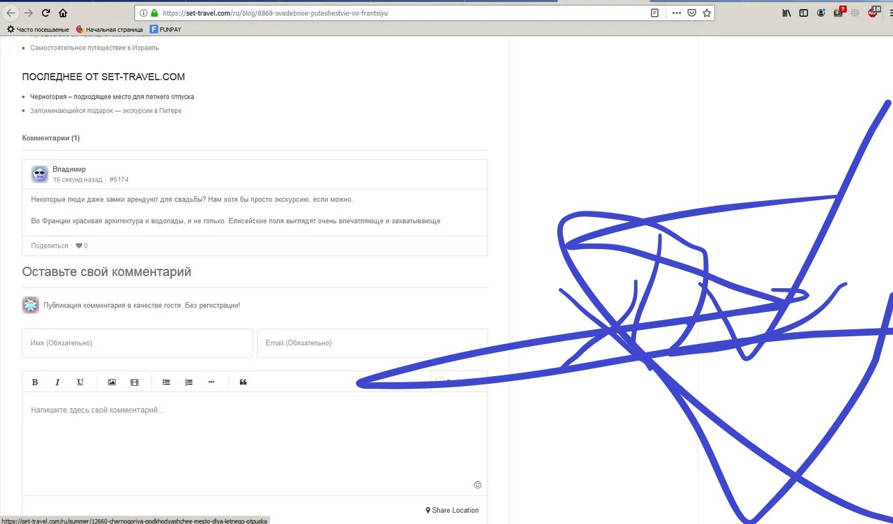 кароч там написано: Некоторые люди даже замки арендуют для свадьбы? Нам хотя бы экскурсию, если можно. Во Франции красивая архитектура и водопады, и не только. Елисейские поля выглядят очень впечатляющ и захватывающе. (с) Владимир
