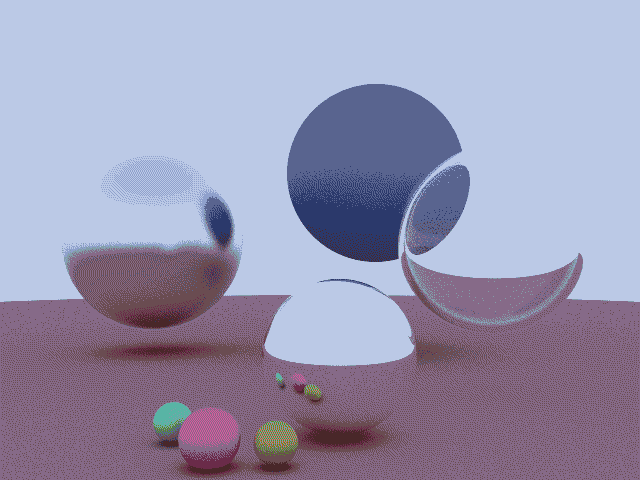 Он сам по себе от артефактов при дизеринге всё же не помогает, всё ещё нужно клампить ошибку. Но вроде бы чуть лучше палитру выдаёт, чем та версия median cut, которая у меня была до этого. В основном за счёт того, что деление коробок в цветовом пространстве делается не по медиане, а со смещением в часть коробки, где меньше плотность цветов, благодаря чему мелкие кластеры цветов меньше страдают от смешивания с цветами из более крупных кластеров. На пикриле три видно, что мелкие цветные шары стали более блеклыми, это из-за этого, я думаю. На пикриле четыре как будто получше.