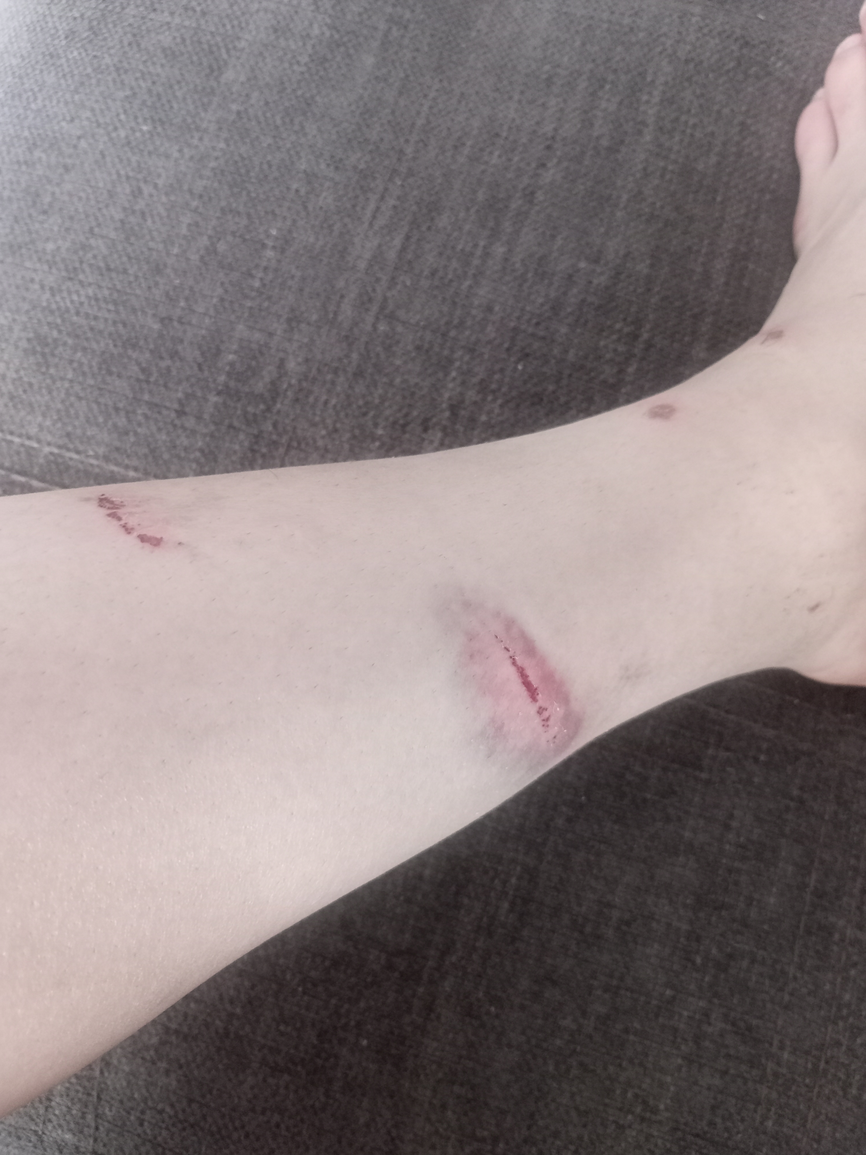 Да вы, блядь, издеваетесь! Как? Когда? Обо что? Сегодня даже ситуаций таких не было. Прихожу домой, раздеваюсь и вижу. Сообщения о травмах мне на почту присылают или я где-то пропустил галочку с разрешением на присылать уведомления? И всё в одном месте, инцидент номер два с обратной стороны, ожог чуть ниже.