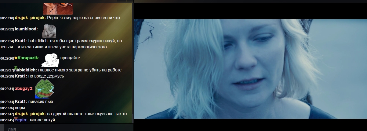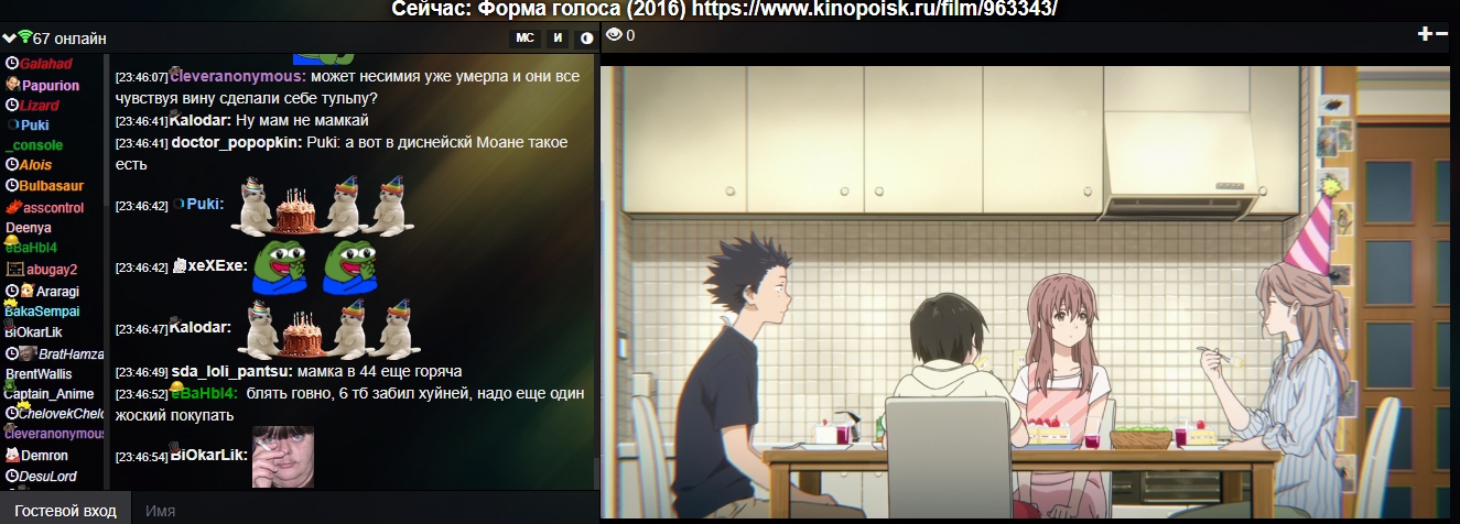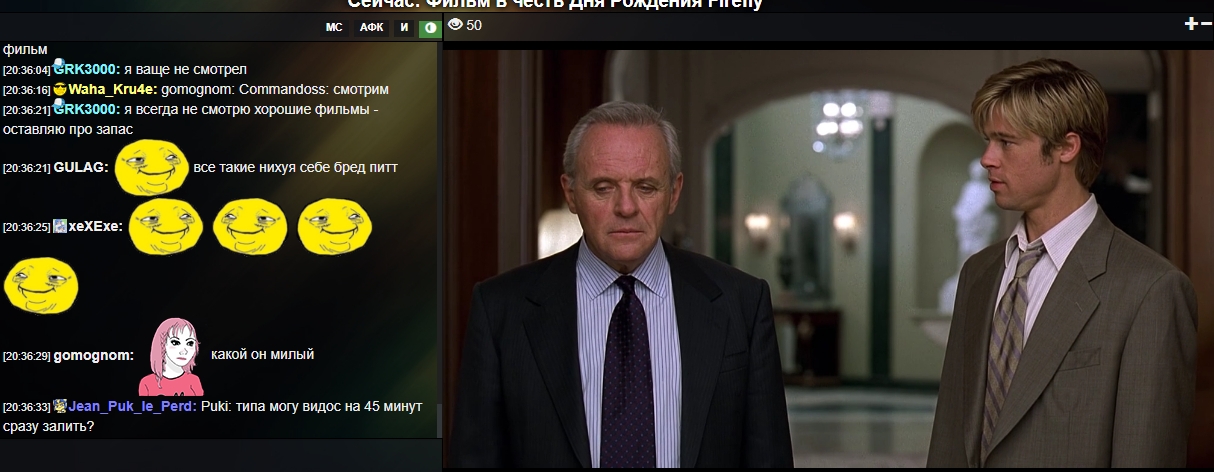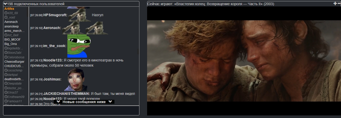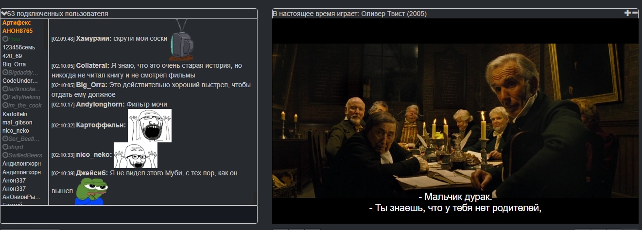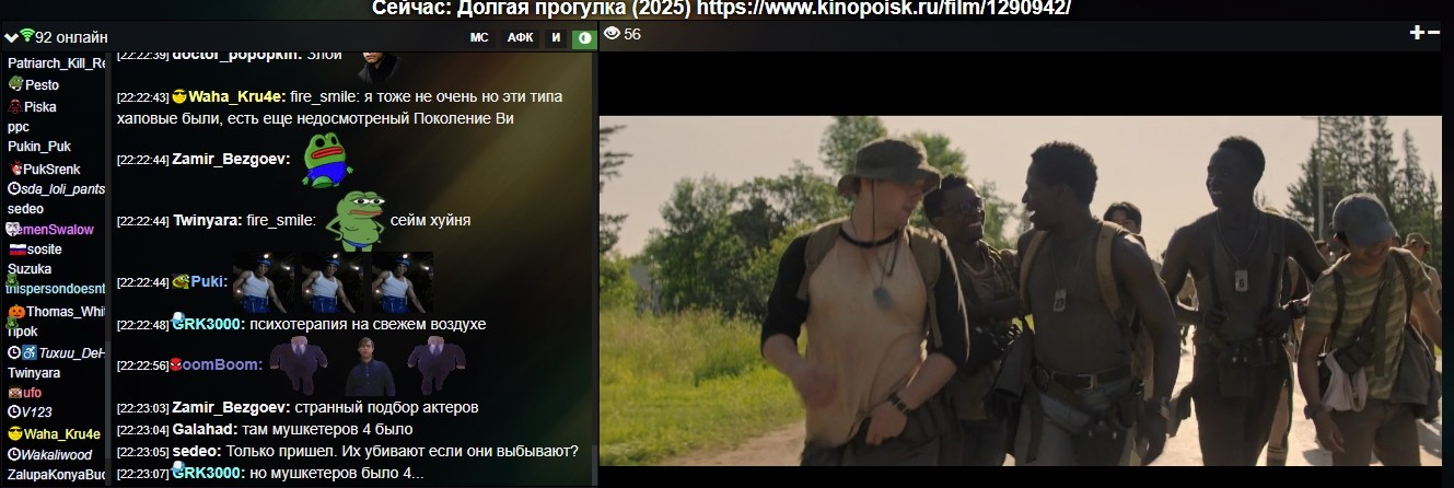 Что значит "мы смотрим"? Это стрим какой-то или каждый смотрит отдельно? Вы по ходу смотрения обсуждаете смотримое? И там нормальные обсуждения или просто анонимные пуки?