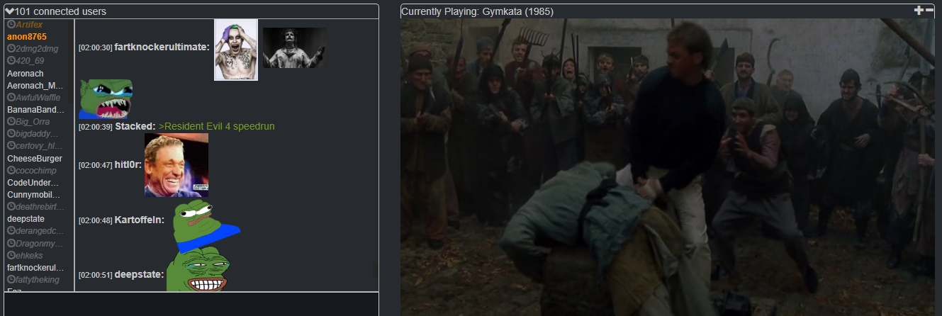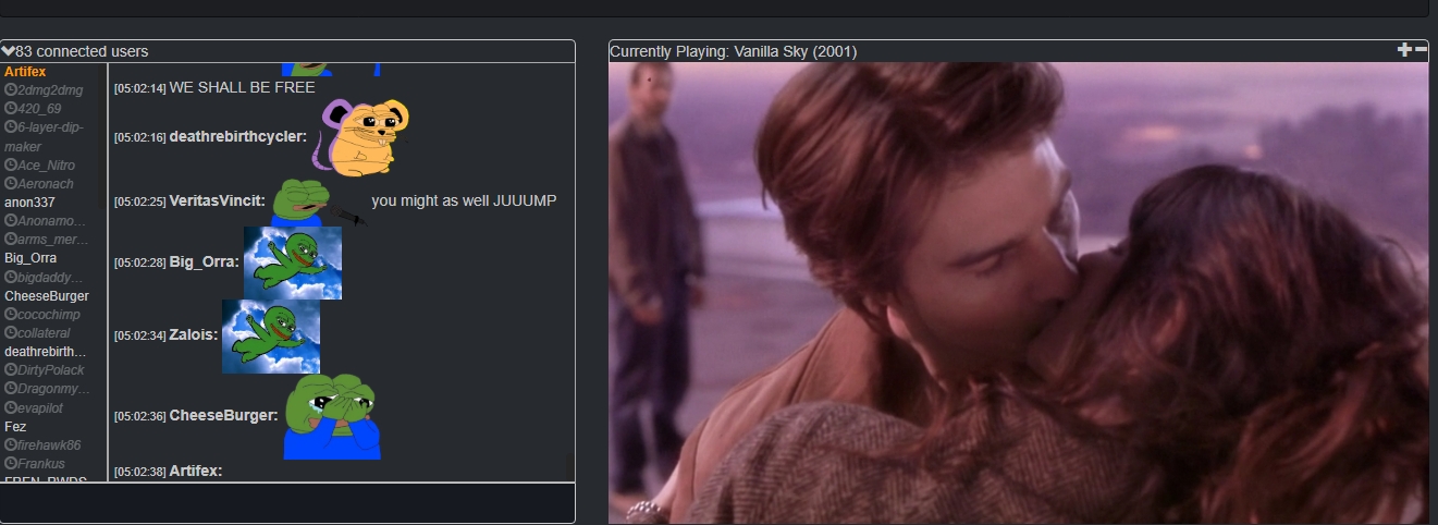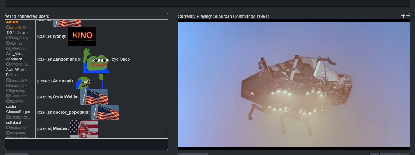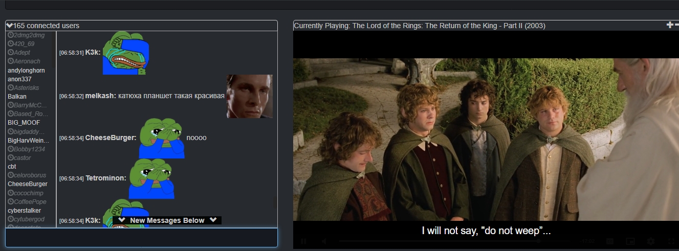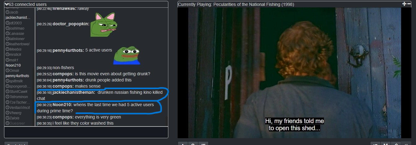 Что значит "мы смотрим"? Это стрим какой-то или каждый смотрит отдельно? Вы по ходу смотрения обсуждаете смотримое? И там нормальные обсуждения или просто анонимные пуки?