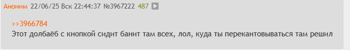 А что дурного было в этих постах? Просто их оставил Постер-Который-Выжил. А Володька (настоящее имя Галахада) бесится. Бан за "щитпостинг" - это тебе не Авада Кедавра, с архивача инфу он стереть не может. К щитпостингу отныне приравниваются: - ссылки на тред без купюр - смехуечки над анальным режимом модерации Это уже какой-то 1984
