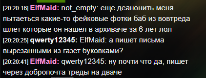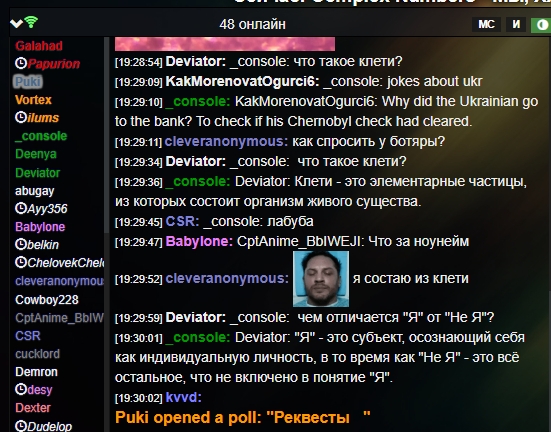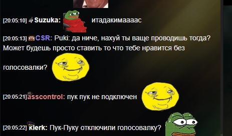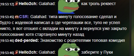 20:28:02] Galahad: asscontrol: так ты хочешь в модерку или рофл? цср хочет тебе сделать специальную шапку защищающую от всех еффектов или модерку? [20:34:11] thispersondoesntexis: asscontrol: галахад строит вокруг себя надежный круг из стукачей, подлиз, интриганов [20:34:07] CSR: asscontrol: :pepe: я хотел тебе медлаь дать
