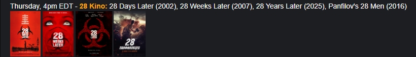 Шапка: Каждый день в 19:30 на Тиваче начинается голосование за фильм, который мы будем смотреть первым. Как только фильм кончается, запускается новая голосовалка. За сутки мы смотрим по 4-5 фильмов, в зависимости от продолжительности. Последний фильм заканчивается далеко за полночь.