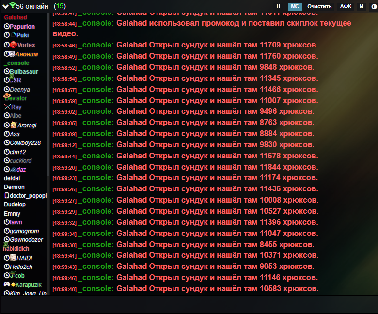 С ракетой и 2чабу вообще смешно вышло - пользуясь дырами в системе, они спекулировали с хрюксами, и Сисира тут же подкрутил гаечки, на днях была драма в чате. ТАК ЗАХУЯ ВООБЩЕ БЫЛО ВСЕ ЭТО ХУЕНО БЛЯДЬ ПРИДУМЫВАТЬ, все эти шапки, хрюксы, если моча даже тут не дает развлекаться, да еще и банит.