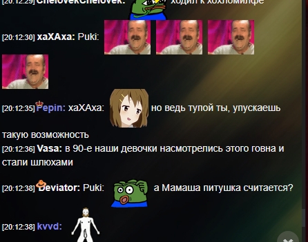3 и 4 - традиционный летний марафон ВК был ознаменован присутствием таких видных тивачеров в чате снидача, как пидрила и мелкаш (доктор-пупкин ушел спать раньше), поскольку тивач опять лежит. Мелкаш писал в чат по-русски и всех материл без разбору.