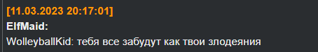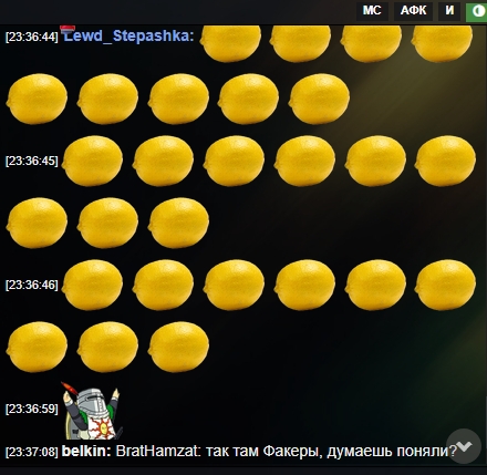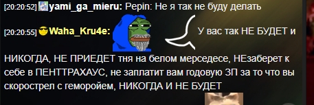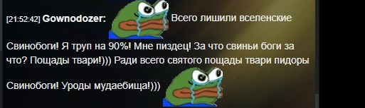Кароч, дорогие подписчики, очередная новость из барака. Товарищ Рэй (он же т. н. в некоторых кругах СРЭЙ, куколд, олень, рогоносец) забанил Бэйбилоха (Бабилона), за то что тот пукнул неправильными символами в чат. А сам задрал мордаху и смотрит на Галахада, что тот скажет. Отчитывается, заискивает. Отчет сейчас напишет. Этот скрин в муваче удаляется со скоростью света, там нельзя плохое про мочерастическую хунту писать. Тут тоже, но пока Рей раскачается, я успею обновить архивач, чтобы сохранить этот пост в веках.