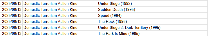 Алсо, сперва хотел продвинуть темку про водил с Такси 3, Арти что-то нечленораздельное ответил. Тогда я предложил "агенты под прикрытием". Вместе с Бриллиантовой рукой у меня шли Порок на экспорт, кин с Гарри Поттером где он бритоголовым становится и Белые цыпочки с Уэйнсами. Сперва Арти отсеял цыпочек ("бабское кино" - местным не зашло два года назад), заменив лентой На гребне волны, потом уже я отказался от Руки, потому что в компании с ними она смотрелась странно. Собрал тему "Афера" с подборкой из 60х. Итог: Арти поставил и тему про аферу, и тему с водителями, и потом еще поставит Агентов под прикрытием. Золотой чувак, я месяц теперь реквестить не буду.
