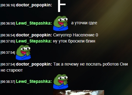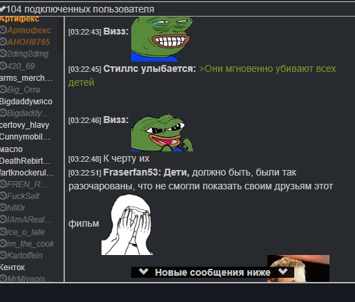 [06:44:17] DreadRaziel: Я действительно хочу провести встречу и убедить другие каналы, что один из нас умер /darkmemer [06:44:19] anal_bag: Мне нужно это на компакт-диске для моего дома с привидениями [06:44:22] Черт возьми продюсеров [06:44:35] Кенток: Вы живете в доме с привидениями? /shake [06:44:42] FREN_RWDS: Артифекс: /boss [06:44:48] hitl0r2: Artifex /letsgo [06:44:56] TheMagicJesus: Встречи SneedTV не имеют смысла. Чем вы занимаетесь вместе? Сядьте и посмотрите SneedTV? [06:45:06] ДредРазиэль: /cobraexcite [06:45:12] Чизбургер: TheMagicJesus: У меня на примете есть серия музыкальных номеров [06:45:13] FREN_RWDS: TheMagicJesus: сидите и смотрите фильмы и употребляйте наркотики, что еще