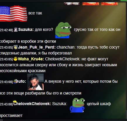 Что до степашки, то извини, старик. Ты заслужил хотя бы пары скриншотов в треде с твоей шизой, просто чтобы помнили, что был такой, но я не успел. Когда озверевший режим ищет, в кого бы вонзить свои зубы, страдают мирные люди. Не первая и не последняя жертва, но она лишь доказывает, что мое дело правое. Я бы очень хотел выйти и как Тони Старк раскрыть свою истинную личину, но не могу. #незабудемнепростим Предлагаю всем тивачерам найти на беттер тв эмоут морковки и запостить ее в честь степашки в чат.