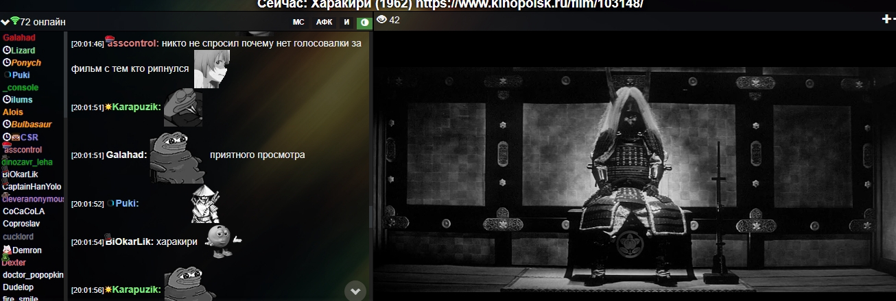 2 - смотрим Харакири по смерти актера оттуда. Вот где культурное влияние: как и на снидаче, админы покрасили все эмоуты в чб-цвет, правда цвета ников забыли