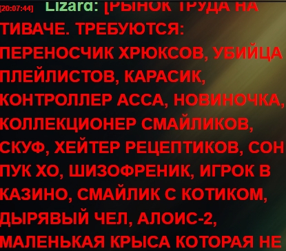 Тивачелахта на перекрытии! Впрочем, допускаю, что Галя сам не понимает, как это выглядит со стороны, когда он высирается на 90% тивачеров, повторяя, что он никому нихуя не должен, а потом ласково интересуется, кто из модераторов что съел, как поспал и не болит ли попка от долгого сидения на канале. Но Галя в этом не виноват, точнее, виноват не более, чем кто-либо другой. Галина исполнитель, щупальце, но голова гидры в другом месте. Корни порока кроются в дискорде, в постоянном "терпи", которое мы слышим от старшего состава, и их неприязненном отношении к анонам. Взять, хотя бы, тот факт, что аватаркам не дали выйти на майские праздники в бэ. Это все следствие одной политики, одной идеологии. "Мы все, а вы - никто".Так формируется эсксплуатационный класс.