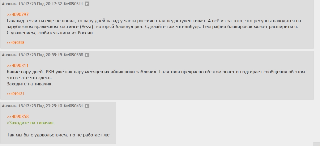 Не, ну это конец. Где-то от 20 до 30 пользователей не могут зайти на Тивач и моча ничего не может сделать. Походу это будет самый грустный и малолюдный НГ.