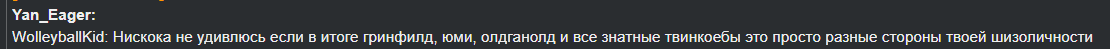 Наковырял папку со старыми скринами, даже не помню, постил их ли нет 1 - Тут про крата 2 - тут волейбол кид ("сын" ВолейболМэна ака Гринфилда) угрожает Бабилону за накрутки