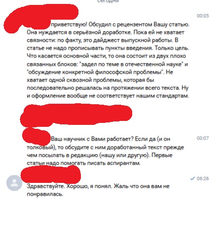 Странные ребята отказали мне в публикации за указание в статье актуальности, новизны и методов исследования. И говорят что моя статья распадается на две не связанные части обзор литературы (1 гребённая страница) и рассмотрение проблемы не связаны (4 страницы). Хотя я говорю, что отечественной литературы по теме метаэтики до сих пор крайне мало, а в той которая есть встречается вот такая-то ошибка, рассмотрению которой и посвящена статья. А если бы я эту 1 страницу обзора литературы просто убрал, то они бы сказали: "а где обзор литературы?" Хотя хз, если они считают, что в статье не должно быть абзаца про актуальность и т.д., то может они считают, что там не должно быть и обзора литературы.