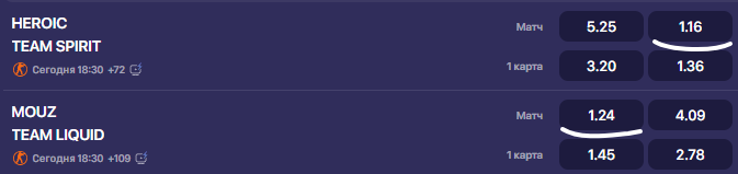 Что у нас завтра: >Mouz vs Furia думаю что мауз, но их кэф слишком низкий >Mongols vs Navi Тут вообще хз. Мне не нравится замена у Нави, так бы пикнул их.