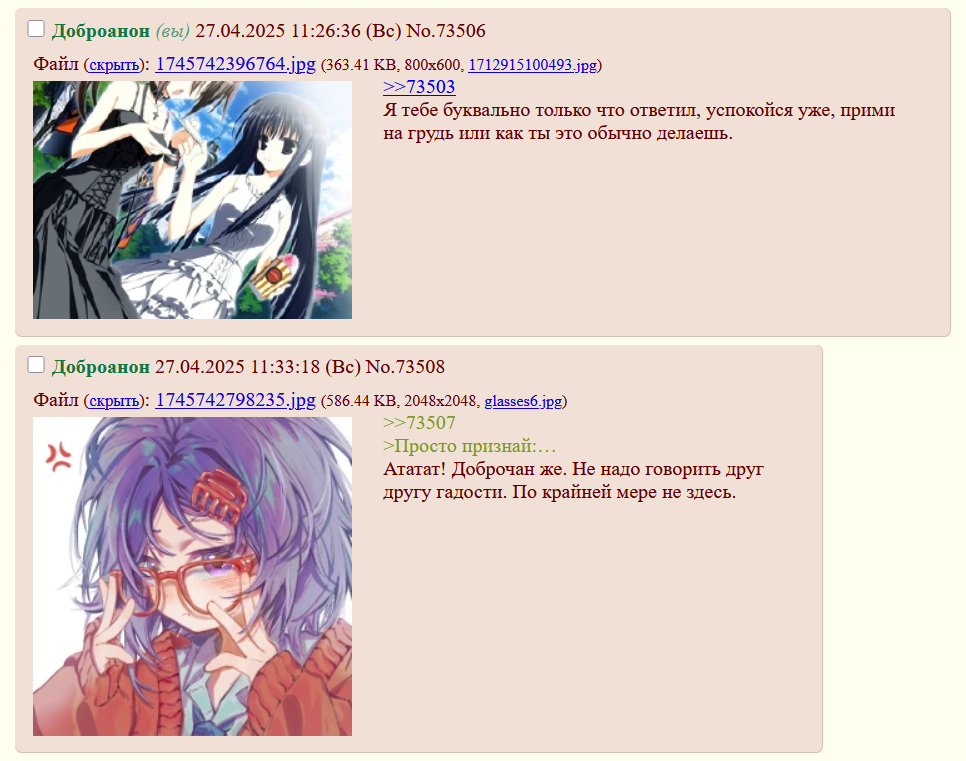 Далее, из-за меня Юки удалил 1 тред тут и еще около 5-6 на доброчане. Конфликт был такойже как и у тебя. В какой-то момент мне стало стыдно что я перегнул палку. Я ему еще в процессе пидоров натравил в личку на сайте гей знакомств, которые прямо в телеграм накидали хуйцов - он удалил тг аккаунт. Мои паладинские чувства простро перешли все мыслимые или немыслимые границы, я виноват, стыдно мне. Я перед ним 2жды извинился и пообещал не поганить треды, ведь все таки он саморазвивается в японском и джаву учит, а мысли которые он пишет в бложике, он будтотвкладывает в них душу, любо читать о них, и о прогрессе. После этого мне удалось с ним помириться общаться на нормальной ноте в рамках личных границ. Хотелось бы чтобы он вернул бложики на бордах, а тут появился ты и начался новый цикл. Вот я к тебе и доебался. Если ты против помириться - хуй с тобой.