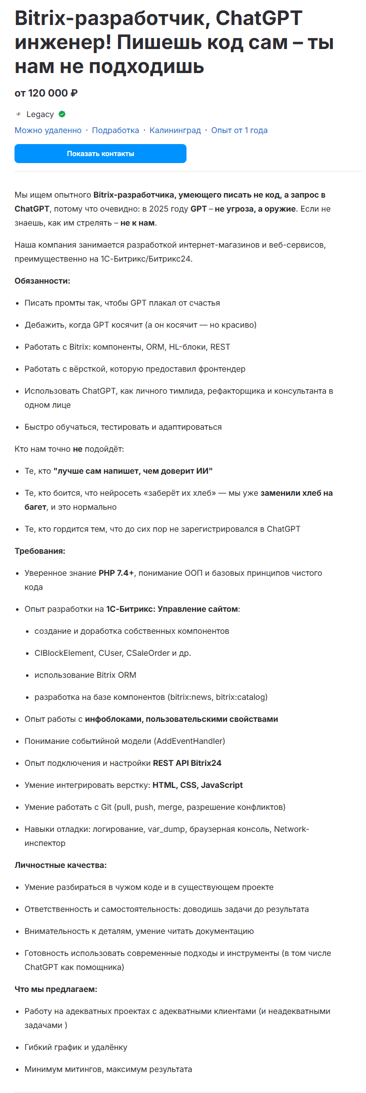 Ну и в принципе это пиздец, конечно, приносить вакансию, которая висит бесконечно годами, типа, ебать оп дурачок, смотри что я нашел, а ты то вот не мог.