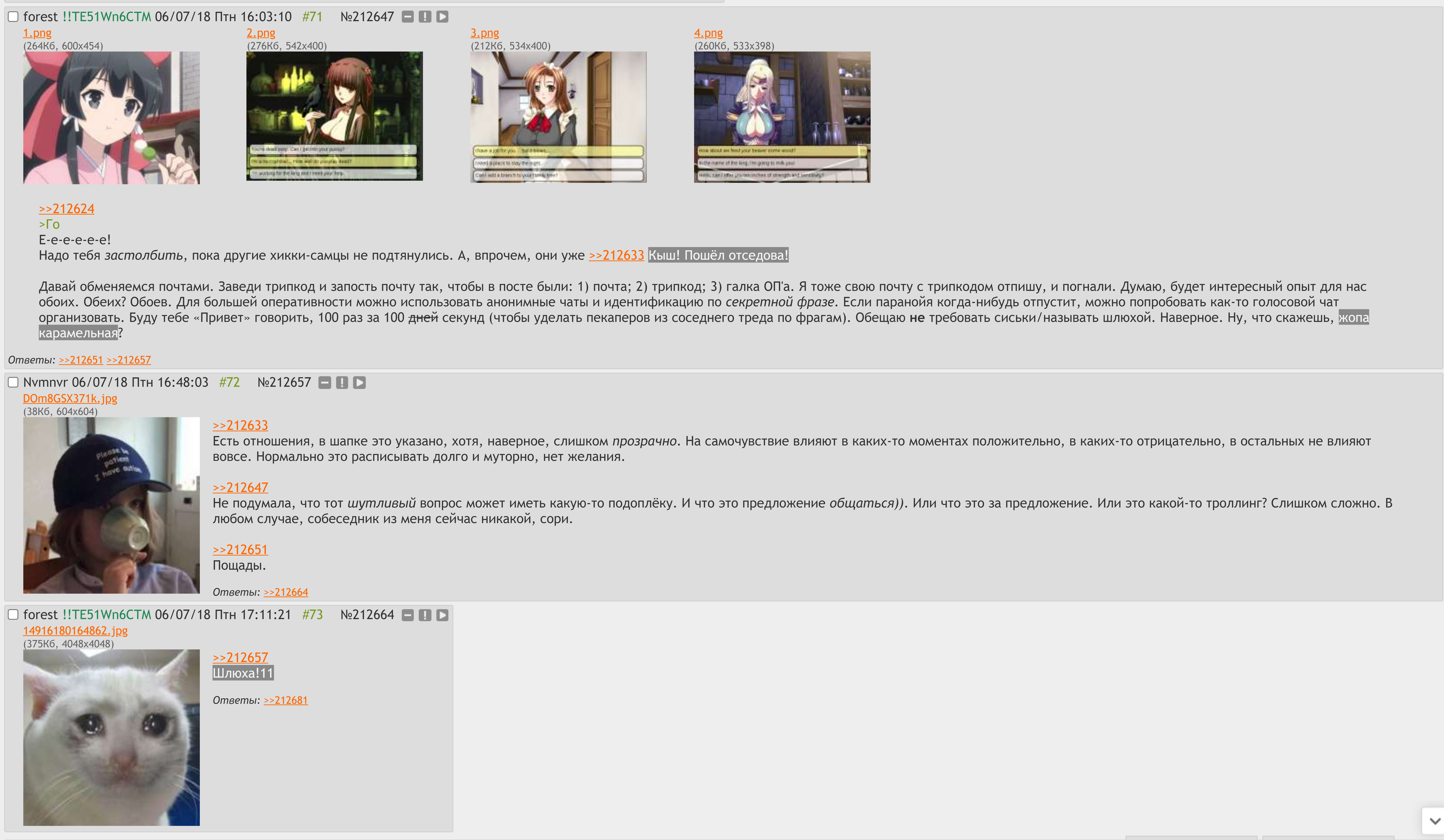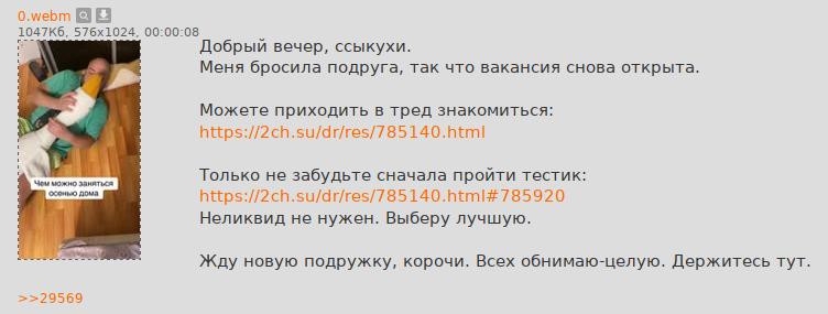 «Все мои друзья здесь, уйти с доски будет означать проигрыш, я делаю какую-то хуйню, но всё равно обойду его, хочу уйти с Форестом на закрытую доску и что-то делать...» Как будто и не было последующих госпитализаций в дурки, во всяком случае, непонятно, чем там занимались.