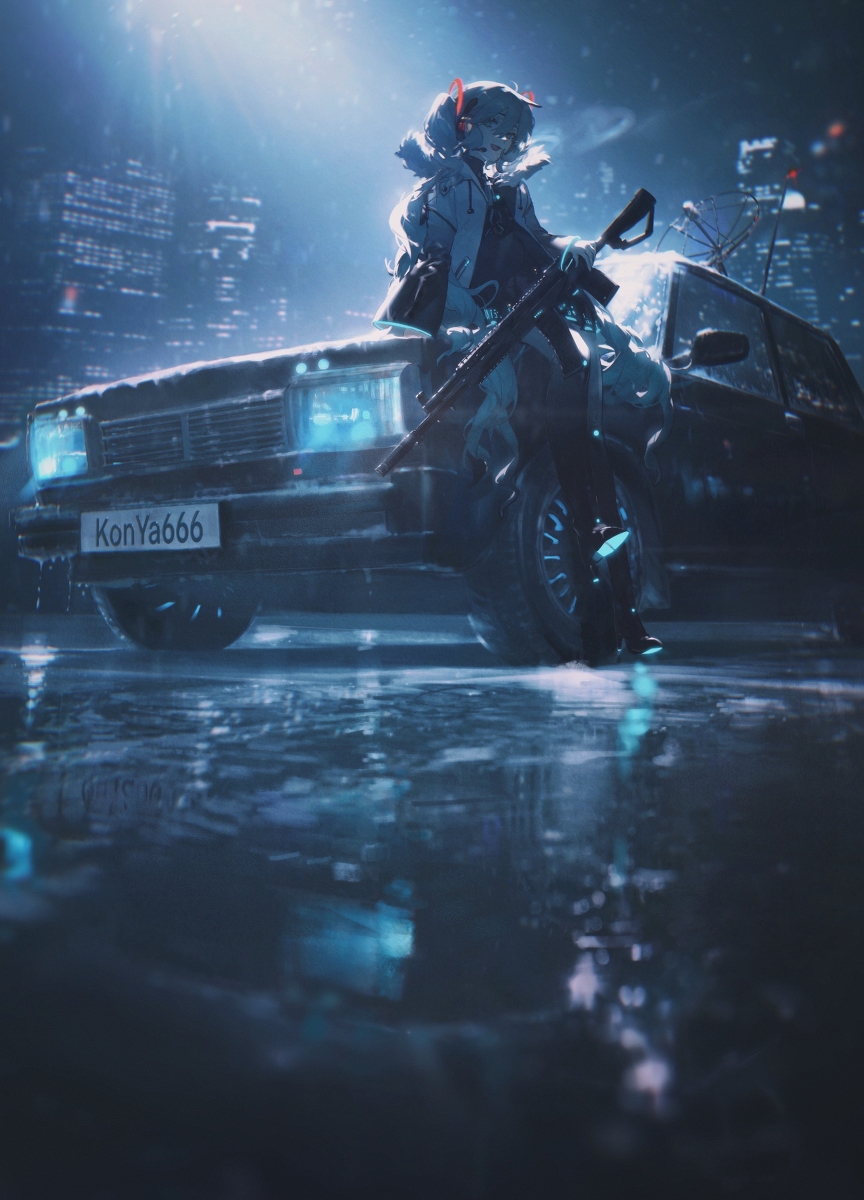 >you are a mercenary >grooming gang >patrolling around the target in a car >she goes outside at night >collects your number plates >disappears >starts hunting you >she finds the location of your headquarter >banishes another van >you leave the job