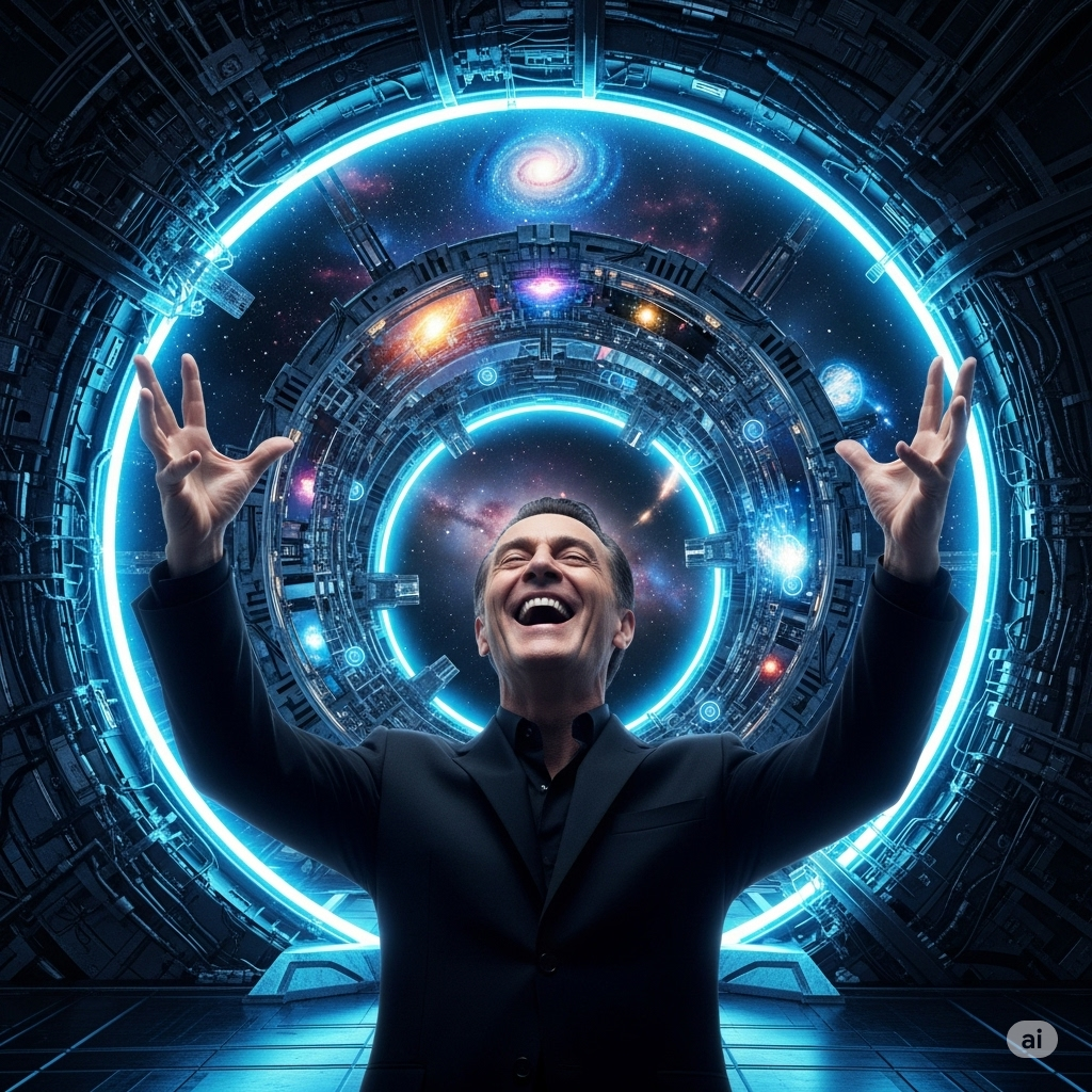 Нейронка реал-тайм создаёт музыку, под неё юмористически общается со зрителями, пишет код игры, играет в неё и раздаёт это всё всем желающим. Аналогично с созданием фильмов итд.
