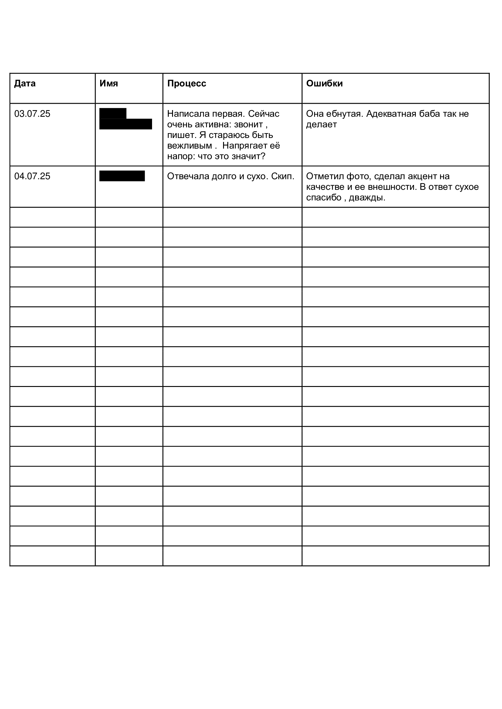 Тян. Почти первое свидание в реале , лол. Как я и говорил рано или поздно кто нибудь со мной согласится прогуляться. Вчера заообщался с девушкой в ВК , договорились встретиться сегодня вечером ( я после работы ). Эта барышня начала меня с утра доставать. Первые тревожные звоночки: необычная активность, пишет много ( хотя я озвучил , что работаю и не стоит меня отвлекать), Выпросила номер. Блять нахуй я ей его дал. Звонки посыпались каждый час, вначале брал, потом тупо игнорил. Ещё и ВК затупил, а когда починили , увидел кучу смс от неё: прыгает с темы на тему , никаких личных границ. А потом она прямым текстом спросила , что в местной группе знакомств какой то кун выложил анкету для знакомства, но есть нюанс: от инвалид . И она почему то посчитала что это я . Сравнение такое себе. Это и стало последней каплей . Отказался от назначенноц встречи. Уже заблокировал её номер ( название каждые пять минут,) Эта дура в ВК до сих пор пишет. Обговорили ситуацию с братом, он предложил вариант выебать её ( мне ) и бросить. Отказался, морально противна. Скорее всего у ней беды с башкой, потом можно встрять жёстко.