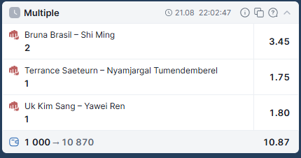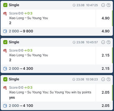 На основном ивенте в Шанхае нету женщин, на эту тему я высирался выше, но на местном турнире который ГАС органзиует для Азиатского таланта он есть ! Причём есть нам знакомый, они видимо решили закинуть звёздочку, чтобы больше народу было заинтересован из местных и вообще. И Минг я хорошо знаю+Уважаю, особенно по 3.45 каэфа против посредственной любительницы лягаться на три раунда. Тумендербелел-монгольский мошенник, его оппонента я не знаю, тому что дебютант, но Тум-дум дебила побить под 1.75 риска стоит. И Юк рандом кореец, который вроде умеет бороться. В непонятно ситуации когда видишь двух азиатов-пикай корейца. Они внезапно очень сильные физически и с крепким ударом как правило. Немного староват для дебютанта, ну да похуй.